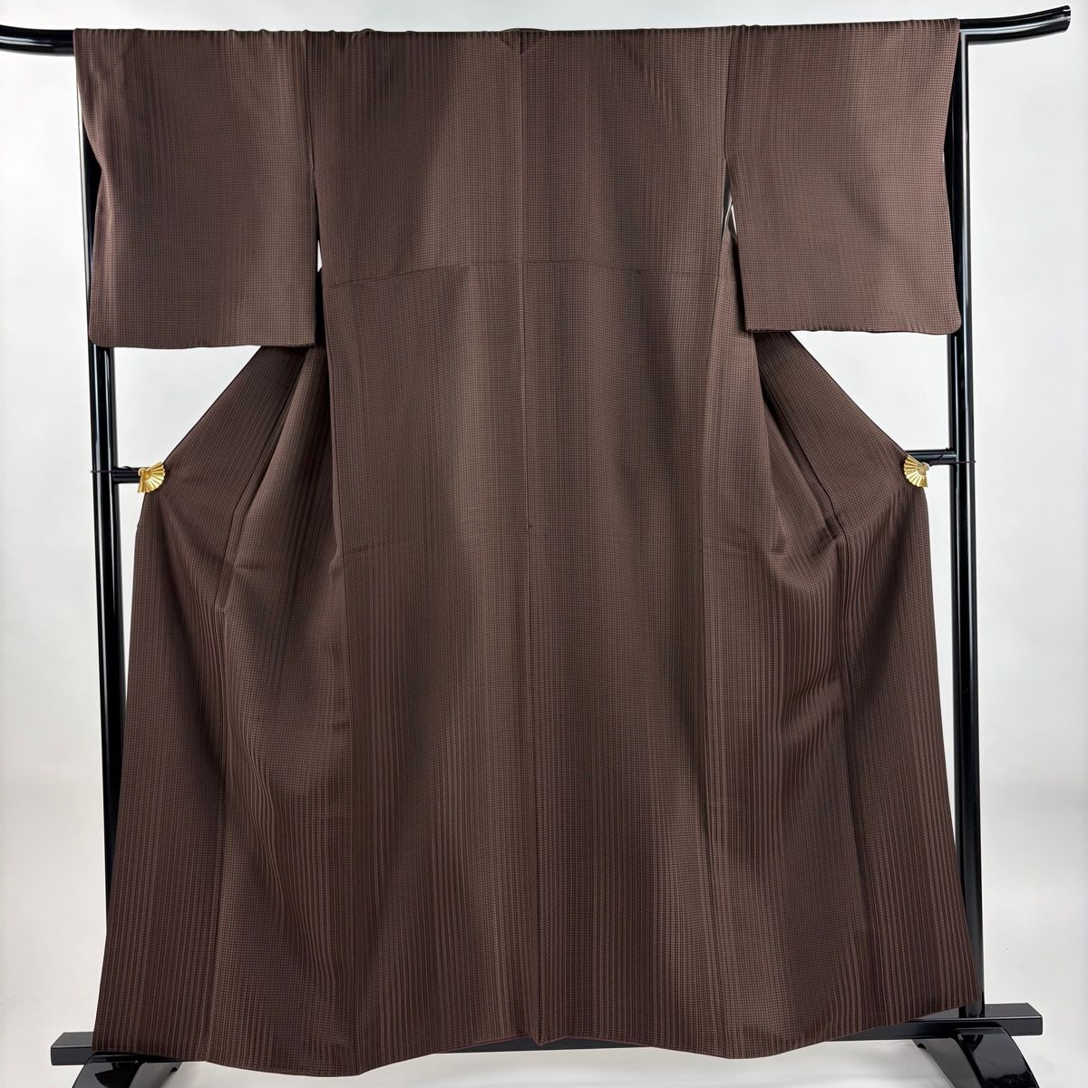 小紋 身丈160 cm 裄丈66.5 M 袷 縞 幾何学模様 焦茶色 正絹 秀品