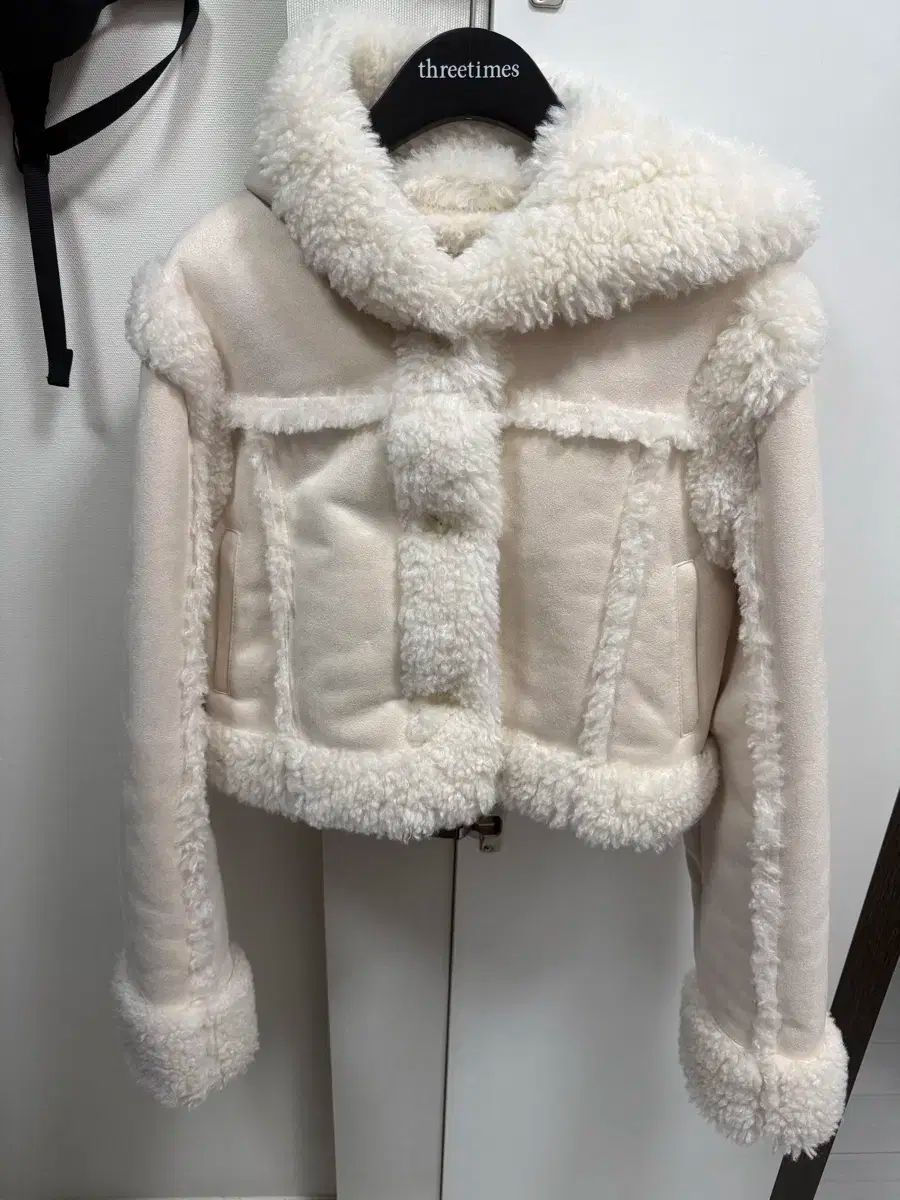x スリータイムズ ベイビー フーディー ファー ムートン アイボリー