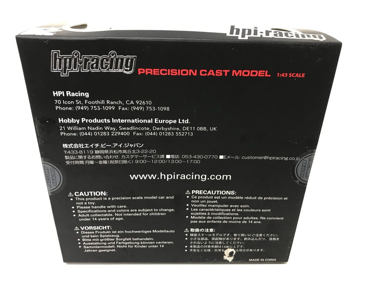 本商品は、hpi-racing (HPI Racing)製の1/43スケール精密ダイキャストモデルカー、MAZDA 787B Plain Color Model: Dark Silver(マツダ 787B プレーンカラーモデル:ダークシルバー)です。 製品番号は998で、すでに絶版となっている稀少なコレクターズアイテムです。 伝説のル・マン優勝車、マツダ787Bの美しいフォルムを、落ち着いたダークシルバーのプレーンカラーで表現したモデルとなっております。 モデルはダイキャスト製で、非常に精巧に作られており、特にカウルの一部が開閉し、内部のロータリーエンジンやサスペンション周りのディテールが確認できる点が大きな魅力です。状態については「傷や汚れあり」として出品しております。 外箱には経年による保管時の傷、擦れ、一部の破れ、シールの剥がし跡が見受けられます。 モデル本体もケースに収められていますが、わずかなホコリの付着や製造段階での個体差による塗装のムラなどがある場合がございます。 特に目立つ大きな破損はありませんが、あくまで新品かつ長期保管品であることをご理解いただき、画像にて状態をよくご確認の上ご購入ください。 商品の価値は、その稀少性と精密なディテールにありますので、状態を考慮してもコレクションに加えたいファンの方におすすめします。