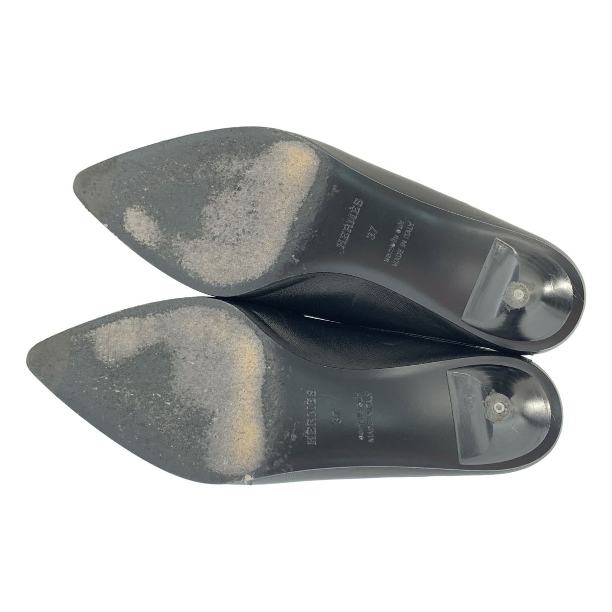HERMES エルメス グロリアス レザー ポインテッドトゥ ヒール ミュール サンダル 37 ブラック レディース