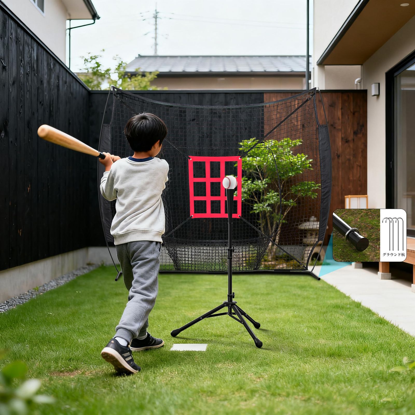 【製品の利点】 組み立てが簡単:工具不要で、ネット、パイプ、ベルトを使用して簡単に組み立て可能です。さらに、ボールの回収が便利な四角いネットポケット構造により、捕獲範囲が広くなり、ボールの回収がより簡単になります。また、トレーニングネットの底部を固定するための釘が付属しており、スタンドをしっかりと固定し、安定性を向上させます。これにより、屋外での練習時に強風があっても倒れにくくなります。三脚式収納型野球スタンド:堅牢な構造で、脚部には一体式防傾設計を採用。組み立てや展開が非常に簡単で、収納や持ち運びも便利です。三脚式の防滑設計により、屋外での多様なシーンや環境に対応可能です。無段階高さ調整機能を備え、身長やトレーニング内容に応じて最適な高さに調整し、打撃トレーニングを行うことができます。