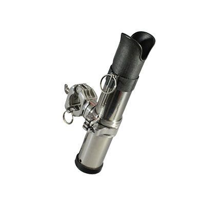 従来型の上部がフラットになっている筒状のロッドホルダーとは異なり、ベイトリール・スピングリール・電動リールに対応したリールキーパーが付いたステンレス製のロッドホルダーです。