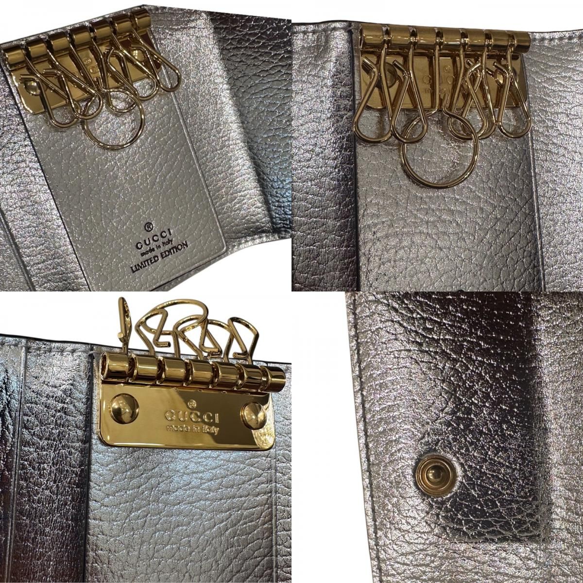 【管理番号】2300044370984【型番】456118【商品名】ダブルG キーケース【素材】GGスプリーム レザー【カラー】シルバー【対象】ユニセックス【サイズ】 幅:約9.5cm 高さ:約6.5cm マチ:約2cm【仕様】開閉式:スナップボタン【付属品】箱、保存袋・当店販売証明書【付属品欄と画像に写っている物が付属品の全てとなります】【コンディション】若干の使用感あり金具若干の擦れあり箱破れあり・展示品につき僅かな小傷等はご了承ください※商品のお値引きは全てお断りをさせて頂いております。予めご了承ください。