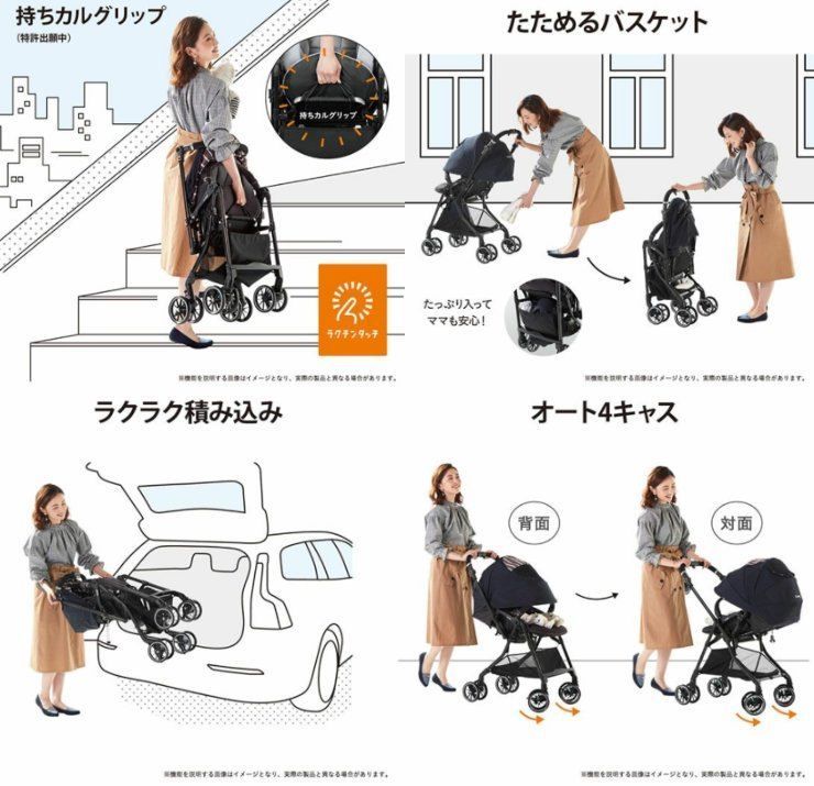 持って、押して、たたんで、おでかけ中のすべてがかるがる。機能充実のオート4キャス、スタンダードモデル。