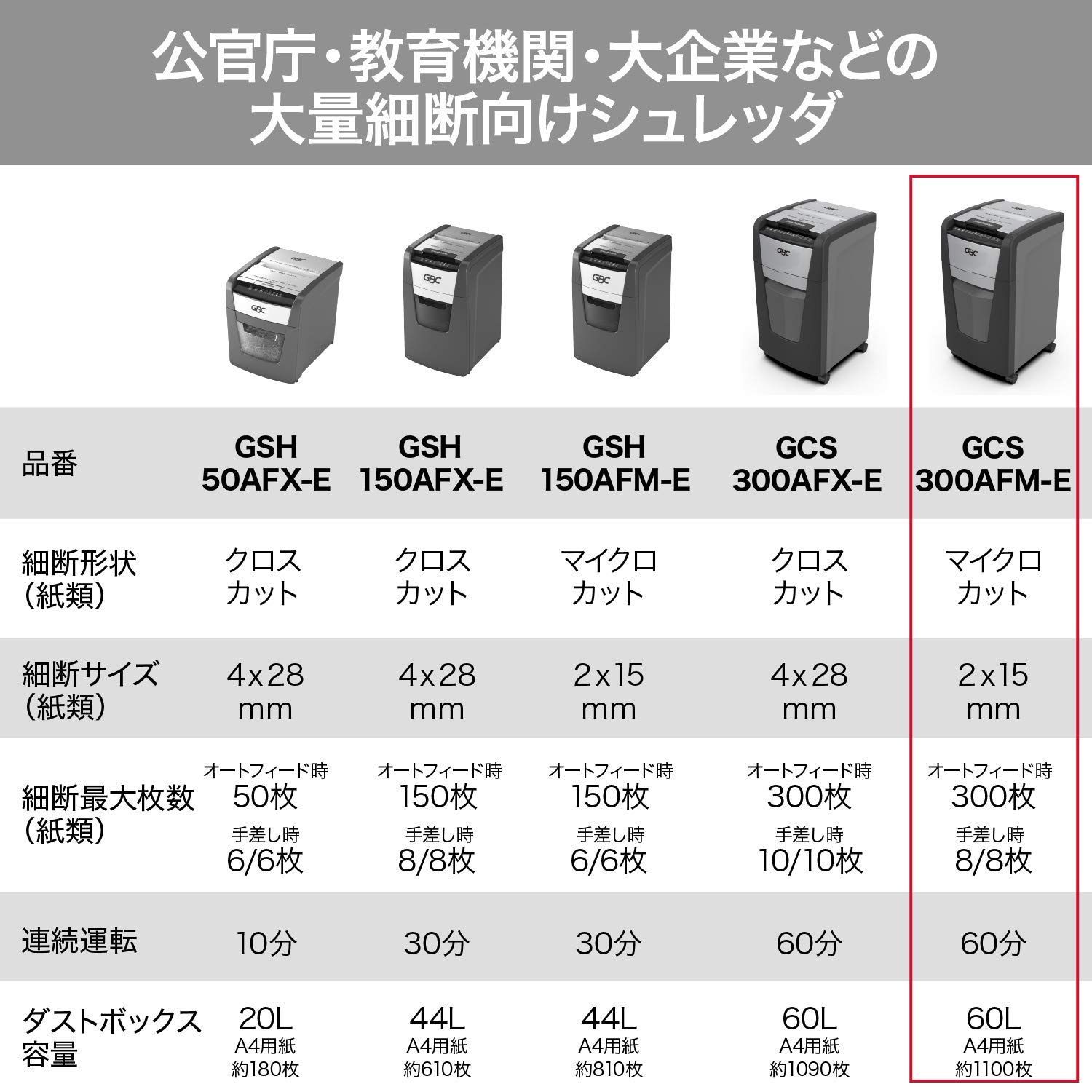 GBC シュレッダー 静音 オフィス用 業務用 自動細断A4コピー用紙300枚 連続使用約60分 プラスチックカードも細断可能 ダストボックス容量60L オートフィード時約1100枚収容 マイクロクロスカット オートフィードシュレッダ ブラック GCS300AFM-E
