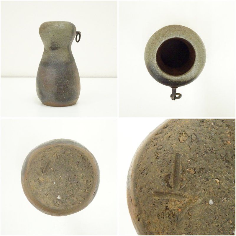 備前焼 山本出造 掛花入 共箱 花入れ 茶道 茶道具 花瓶 花器 おしゃれ フラワーベース 道具 茶室 華道 華道具 インテリア hnir