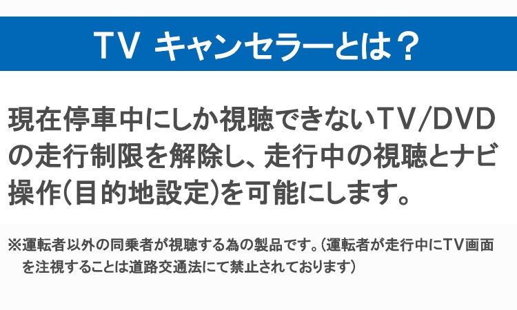 注意事項 本製品は 運転者以外の同乗者が走行中のナビゲーションの操作・TV/DVDの視聴を可能とする為に開発された商品です。