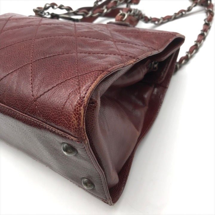 CHANEL シャネル ココマーク キャビアスキン ヴィンテージ 2 WAY ハンド ショルダー バッグ ボルドー ブランド 鞄 Bag k 5209