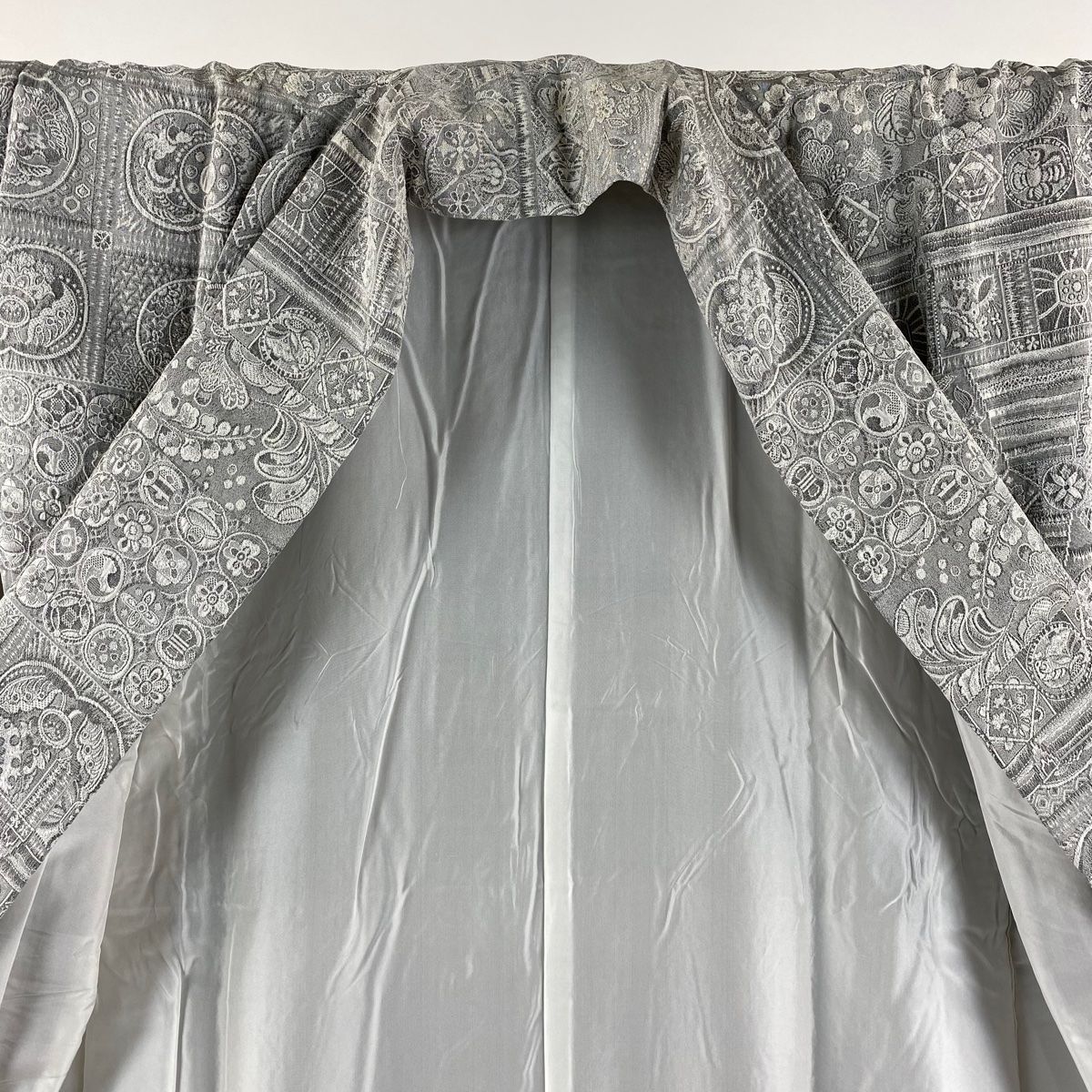 小紋 身丈160 cm 裄丈64.5 M 袷 染織 草花 向かい鳥 灰色 正絹