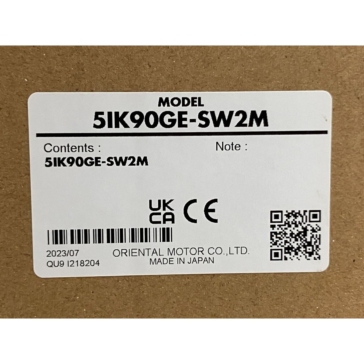こちらは「オリエンタルモーター 5IK90GE-SW2M 電磁ブレーキ付モーター 開封済 未使用 」でございます。