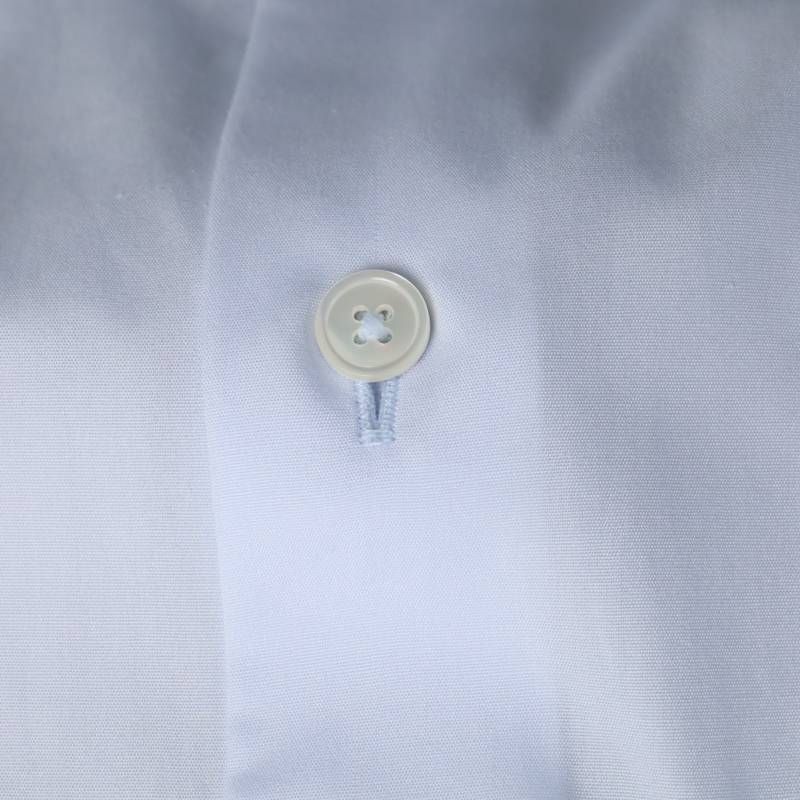 Paul Smithの定番アイテム、ブロード ドレスシャツでごす。光沢感あふれる100/2糸を使用した上質なブロード生地は、肌触りがなめらかで長時間の着用も快適。大きめに仕立てられたセミワイドカラーは、ネクタイスタイルにもノータイにも映える洗練されたデザインです。袖口の内側にあしらわれたシグネチャーストライプが、さりげなくブランドらしい遊び心を演出。シルエットはレギュラーフィットでバランスが良く、フォーマルからビジネスまで幅広くご活用いただける逸品です。日本製。