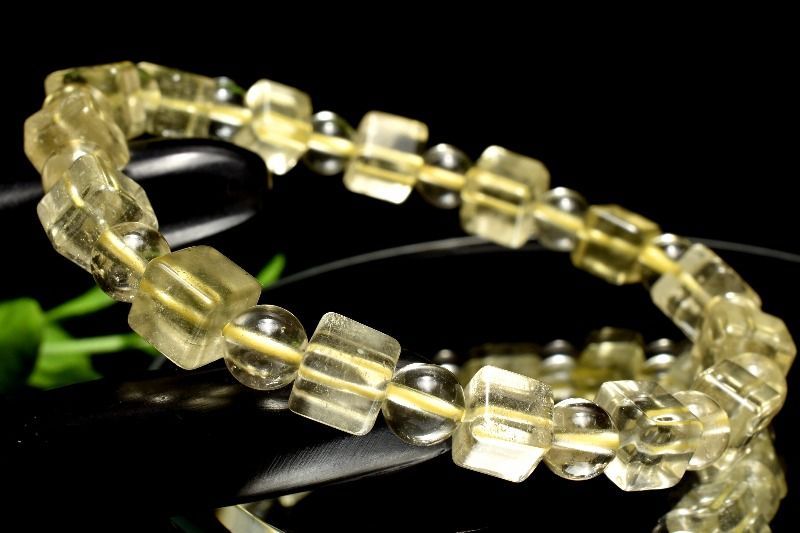 1点物 リビア砂漠の宝 リビアングラス 7 x 丸玉6 mm キューブ ブレスレット パワーストーン 天然石 _MC 363