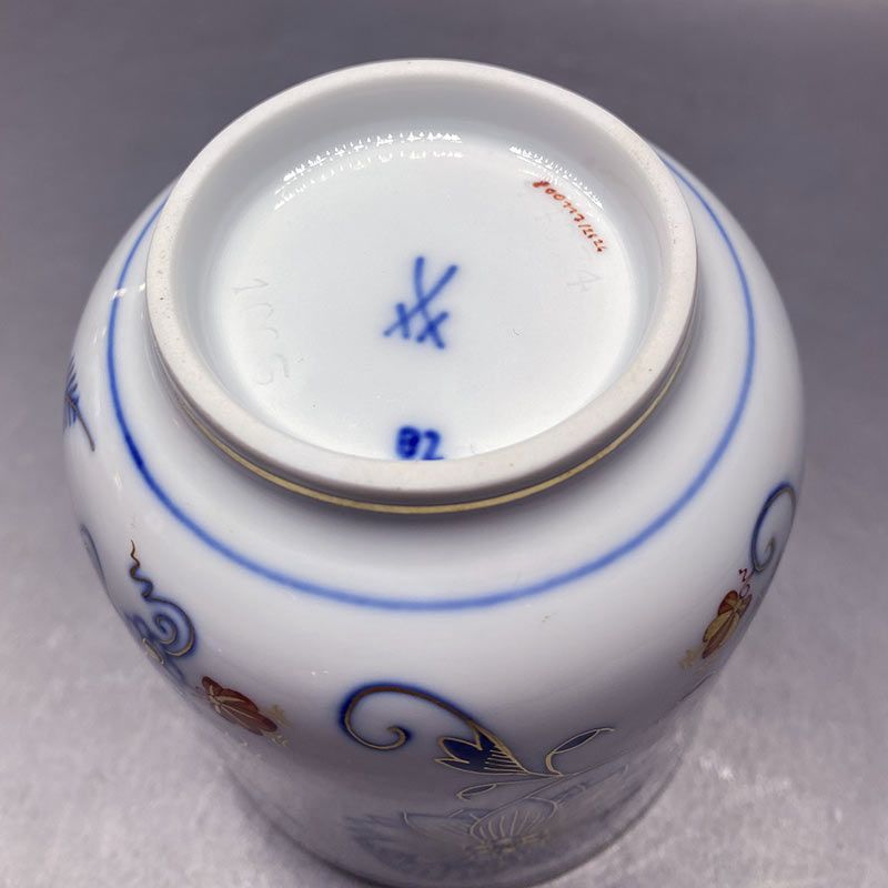 マイセン Meissen ブルーオニオン レッド&ゴールド 夫婦蓋付湯呑 共箱 iw 240924 a 01