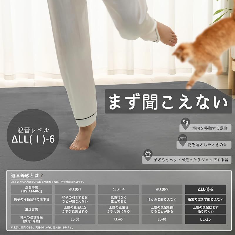 ??【遮音レベルΔLL()-6】優れた遮音性能を持つカーペットで、子供やペットがカーペット上で走り跳ねても、ほとんどの音を軽減し、静かでリラックスした生活環境を提供します!