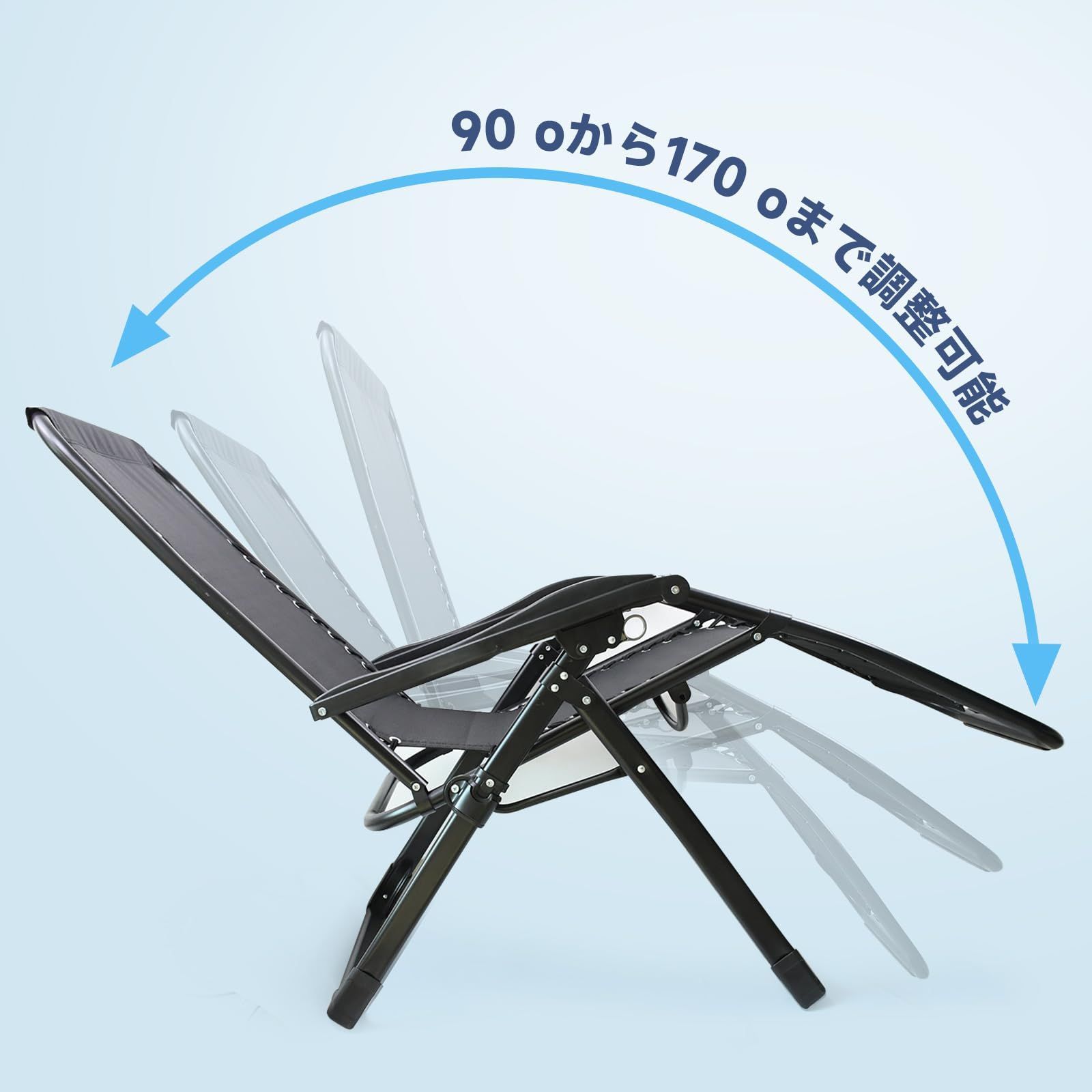 組立不要 軽量 レジャー キャンプ クッション ドリンクホルダー アウトドア 枕つき 角度調整 耐荷重150 KG 昼休み 一人用 庭 椅子 花見 折りたたみ 砂浜 戸外用 リクライニングチェア cx-0615-2 chaoxinyizu ネービー