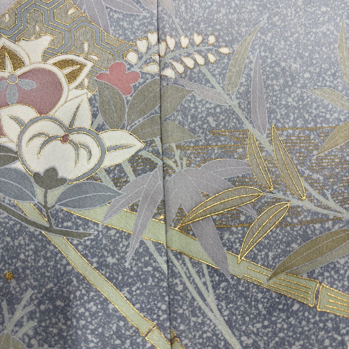 訪問着 身丈165 cm 裄丈67.5 L 袷 冊子 松竹梅 金彩 ぼかし 青灰色 正絹 秀品