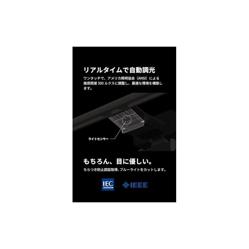 【自動調光&人感センサー搭載】周囲の明るさとユーザーの存在を検知して、自動で最適な明るさに調整。前回の設定を記憶し、毎回の操作の手間を軽減します。