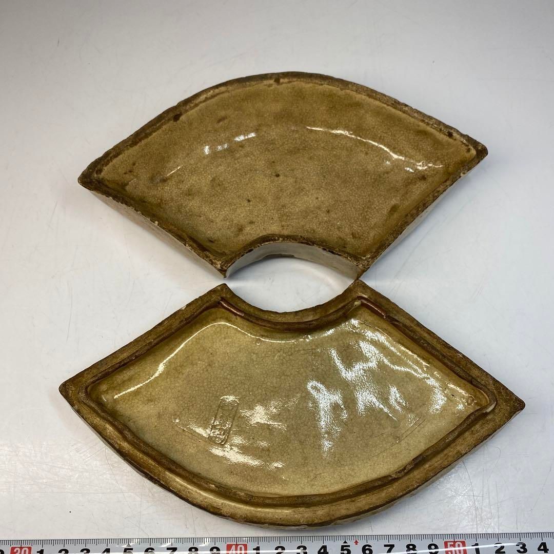 江戸中期 伊賀焼 扇面形蓋物 木 最大横幅約21.7㎝ 東Y 6-0418