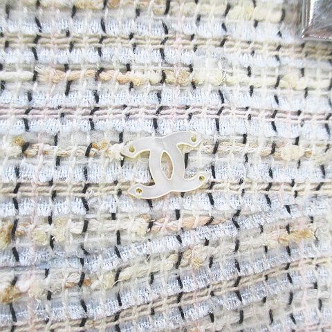 シャネル CHANEL 01 P M 2434 膝丈 台形スカート スカート ツイード CCマーク ココマーク 絹 シルク 34 白系 ホワイト 裏地