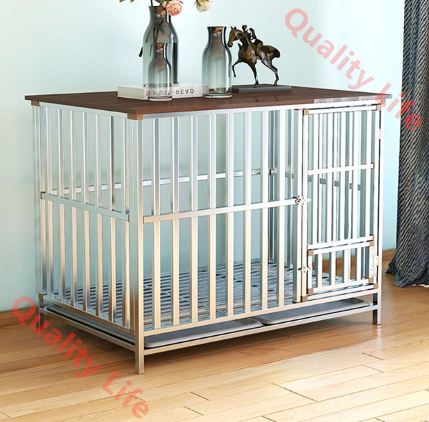 大型犬ゲージ ペットケージ 犬ケージ 屋根付き 無垢材素材 ステンレスケージ 犬 頑丈で耐久性があり 大型犬用ケージ 中型犬用ゲージ ペットサークル サークル ペットハウス 掃除が簡単 組み立てが簡単 屋内および屋外での使用 80 x 55 62 cm