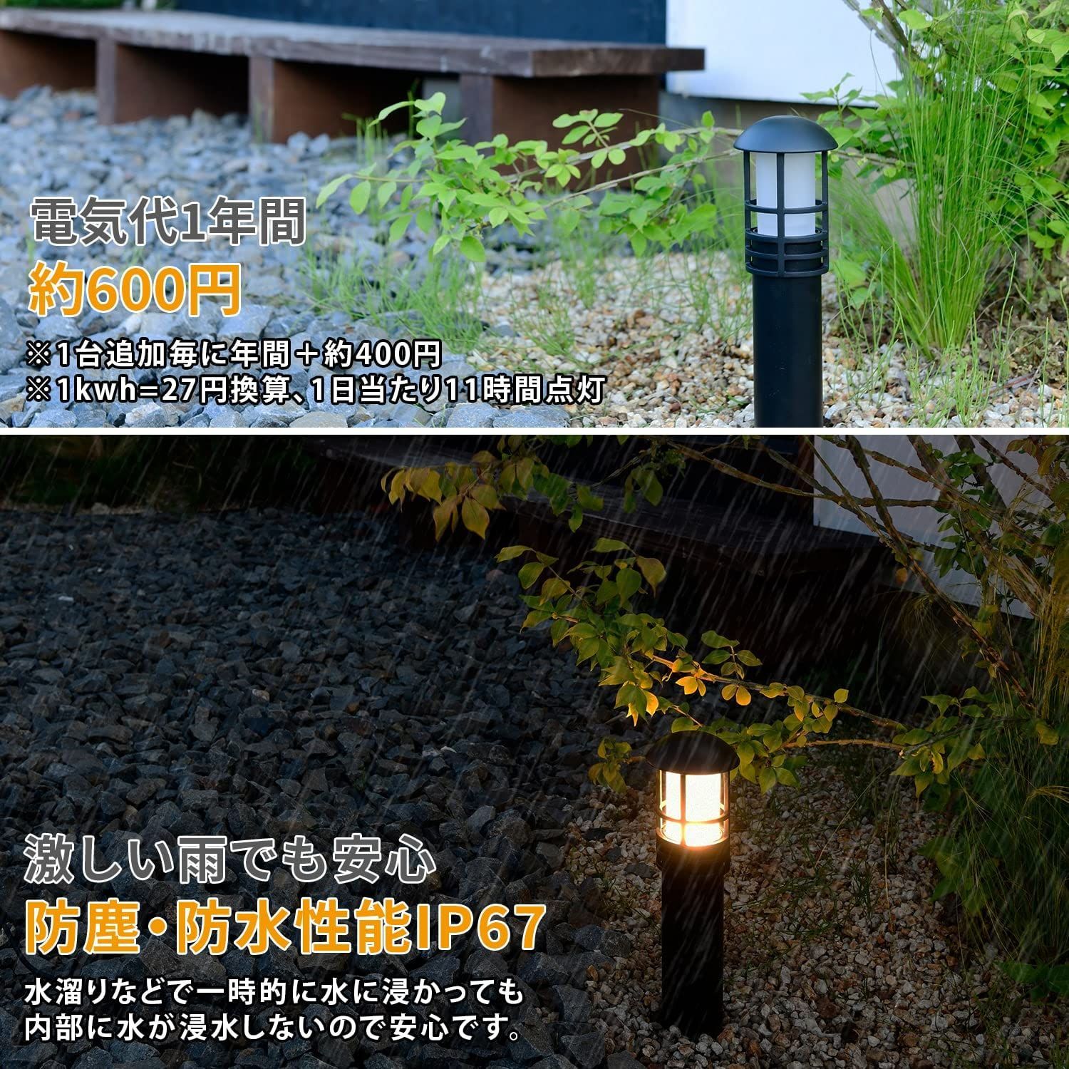 【特徴】足元を優しく照らすガーデンライトです。スタートキットに追加してライトアップの幅を広げましょう。IP65の防塵防水性能なので雨が降っても問題なくご使用いただけます(屋外用PSE認証取得済み)。ライトは耐久性の高いアルミ素材を採用し、LED寿命は約50,000時間と長期交換が不要なので、お手入れも簡単です。140度の角度調整が可能で、光源が高いポール式ライトで広範囲を照らします。