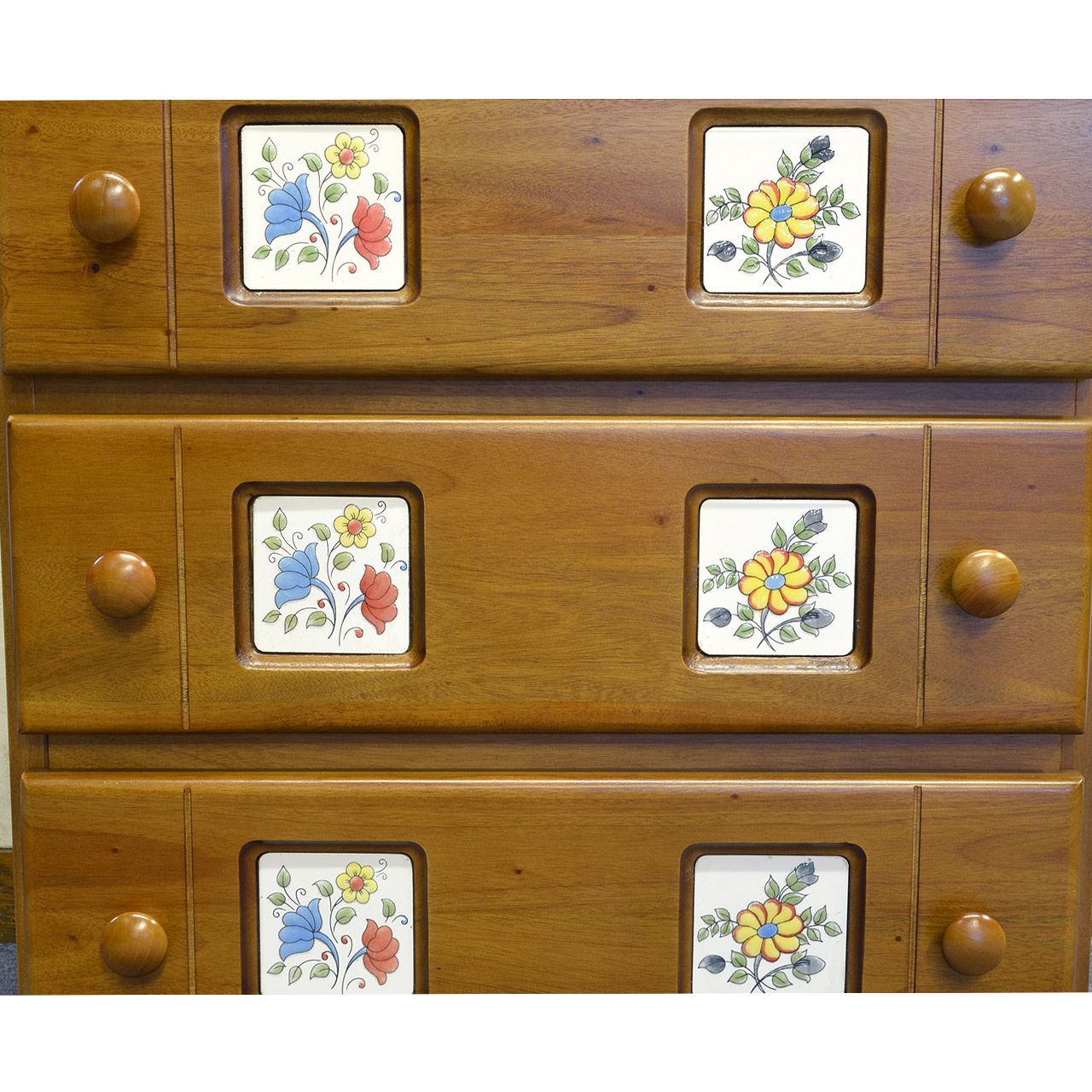 タイル付き5段チェスト マホガニー材使用
