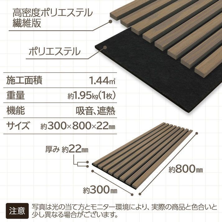 材質:天然木目の圧板 + 中密度繊維板 + 高密度吸音ポリエステル繊維