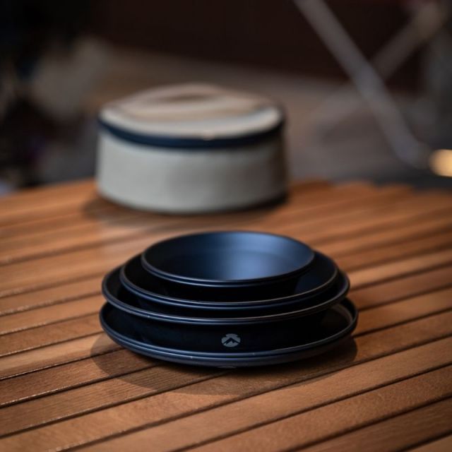 大好きな仲間や家族、たまに一人で、素敵な食事の場にキャンピングムーンのステンレス食器セットをご使用ください。大小4種類のプレートで使い勝手抜群!