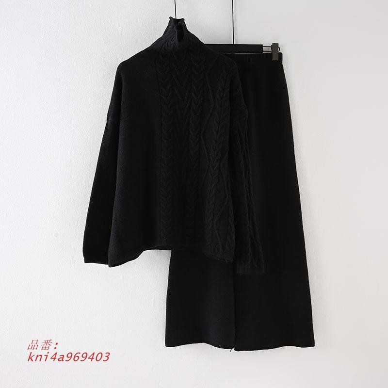 セットアップ レディース ニット 秋冬 ワイドパンツ 長袖 セーター 上下セット ゆったり カジュアル 部屋着 ハイネック kni 4 a 969403