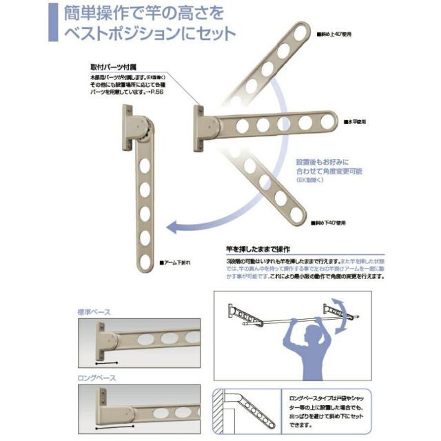 設置後も簡単操作で竿の高さ(角度)を3段階に調整可能なので、ベストポジションでの物干しが可能です。