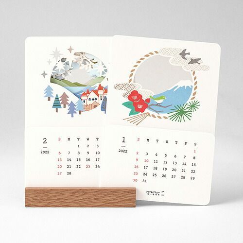 絵柄の重なりが楽しいインテリアカレンダーです。月ごとのモチーフをレーザーで細かく抜いており、カードをめくると後ろのモチーフが見え隠れする絵柄の変化をお楽しみいただけます。季節感を出すために、春には春の絵柄だけが見えるようにデザインしています。フルカラーでレーザー加工を施しているものは他にはない仕様です。デザインは、花柄と風景型の2柄。手書き風フォントや柔らかい絵柄が、大人の女性も使いやすいおしゃれな雰囲気を演出しています。質感のある木製の台座は、インテリアに馴染み自宅の玄関やカウンター、オフィスのデスクなど、場所を取らず気軽にお使いいただけます。ボックスにセットされているので、ギフトにもおすすめです。一年間使用した後には、切り離して、カードとしても使えます。季節ごとに飾るオブジェのように、一年を通して季節感や楽しさを演出できるアイテムです。※カードは郵便はがきとして送ることはできません。郵送の際は、封筒に入れてください。【検索ハッシュタグ】#ミドリ#デザインフィルミドリ#カレンダー#年末品#日付品#2022#カレンダー##風景