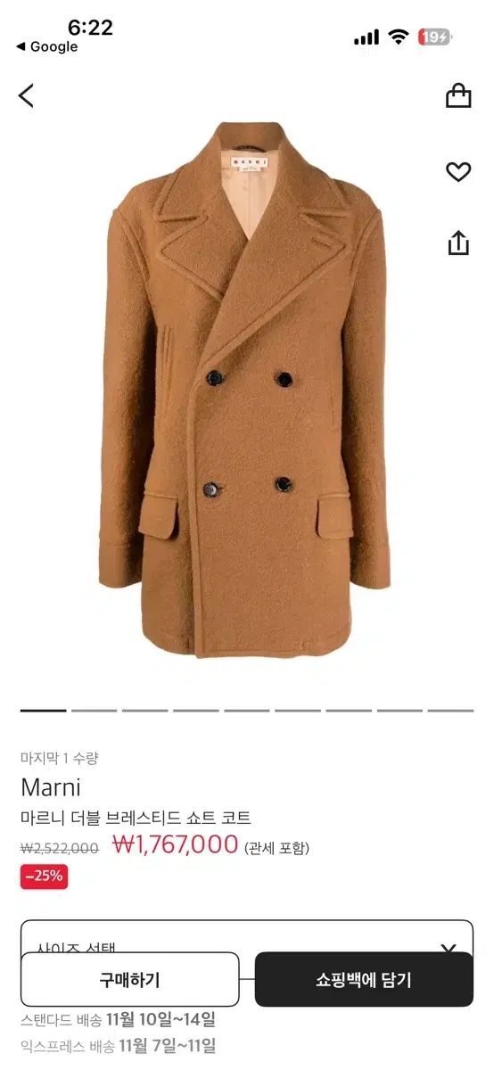 マルニ ダブルコート キャメル 50