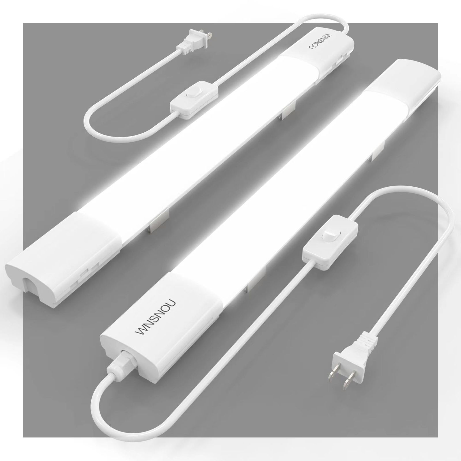 WNSNOUプラグライト、60CM 18W 2000LM 6500K LEDショップライト、防水およびリンク可能なLEDチューブライト、NO/オフスイッチ付きプラグコード、LED天井およびクローゼットライト、ワークショップライト。 (60CM-2PCS新しい)