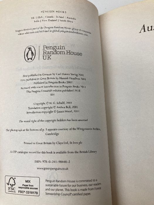 Austerlitz Penguin Essentials 81 Books Ltd Sebald W. G
