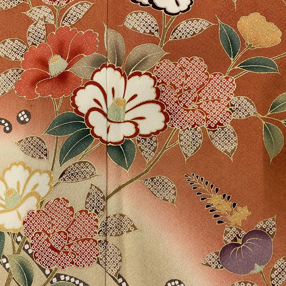 訪問着 身丈156 cm 裄丈63.5 S 袷 椿 橘 金彩 染め分け オレンジ 正絹 秀品