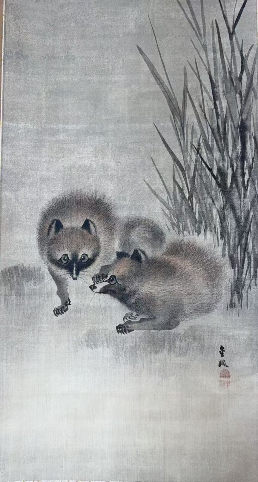 望月金鳳 夫婦狐狸図 他拔 出世の意 動物画 掛軸 き 落款あり