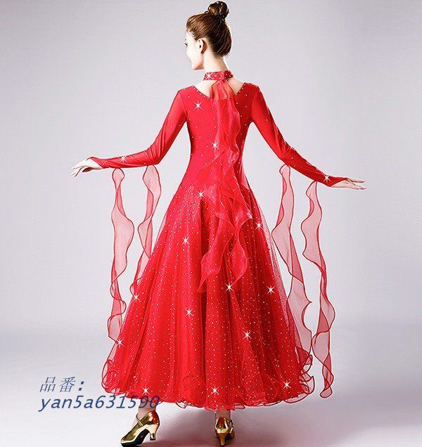 社交ダンス ドレス 競技用 社交ダンス衣装 ワンピース 舞台 キラキラ ヴィーナスダンスウエア 長袖 広がる 豪華 yan 5 a 631590