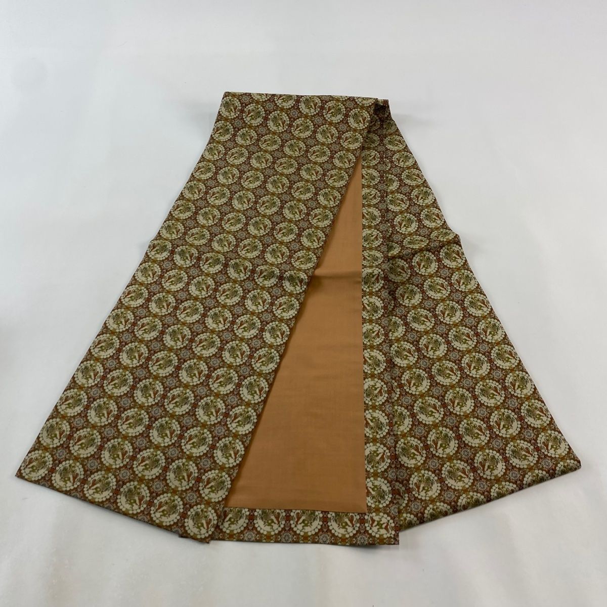 開き名古屋帯 龍村美術織物 比翼仕立て 獅子狩文錦 赤茶 正絹
