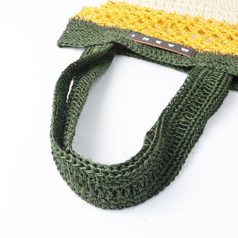 【品名】美品 マルニ マーケット MARNI MARKET FIQUE ナチュラルファイバーショッパー |ベージュ イエロー グリーン