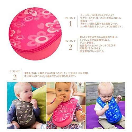 【イギリスで大人気 タフでやさしいお助けエプロン 】 イギリス生まれのウルトラビブは、ウェットスーツ素材の特性を活かしたお食事用エプロン。 吸水性と防水性を兼ねそろえたネオプレン素材のおかげで、食後のお片付けやお洗濯、お手入れがとっても簡単になりました。 生後3カ月から長く使えます。 【思わずポロッをしっかりキャッチ 】 裾をくるっとまくるだけで、立体的な食べこぼしキャッチのポケットに 床に落ちる食べこぼしも減るので、後片付けも楽チンです。 【柔らかくてタフな素材 ネオプレン】 1930年代にアメリカ・デュポン社が開発したネオプレン。 軽くて柔らかいネオプレンは、ウエットスーツの素材として使用されています。 『ネオプレン表面』…柔らかくて肌ざわりのよい吸水性のある表面が水分をキャッチします。 『ネオプレン中層』…インナーゴムが表で吸収した水分の浸透を防ぎます。完全防水ではありません。 【やわらかタッチで首周り安心】 お子さまの肌に触れる首周り部分にもネオプレンを使用。肌ざわりのよい柔らかタッチでお子さまもご機嫌に マジックテープで装着できるので、動き回るベビーにもワンタッチで装着可能です。 【ストレスフリーな着け心地】 ビベッタ ウルトラビブはお子さま想いのやわらかネオプレン素材。 カサカサしないから心地よく、ストレスフリーな着け心地です。 硬いシリコンタイプとは違い、立体ポケットが食卓に当たっても邪魔にならず、お食事に集中できます。 【くるくるっと巻いてコンパクト】 くるくるっと丸めてコンパクトになるので携帯に便利です。 お手持ちのヘアゴムやシュシュでまとめれば、バッグの中でかさばりません。 【頼りになる防水素材】 吸水性のある表面が水分を吸収し、インナーゴムが水分をブロックして浸透を防ぎます。 撥水加工で水分を吸収しないビニールエプロンとは違い、表面で水分を吸収してキャッチするから、お洋服を汚れから守ってくれます。 正しいお手入れ方法で、油シミも残りません。 縫製部分があるので完全防水ではありません。大量の水分は吸収することができません。 【じゃぶじゃぶ洗えてすぐ乾く】 洗っても乾きが早いのでお手入れも簡単 朝食で使ったあとのビブを夕食でつかうこともできます。 吊り干しの場合は裾をまくって立体ポケットの状態で風通しのよい場所に干せば乾きムラがなくなります。 乾燥に要する時間は、湿度や環境により異なります。風通しが悪い場所に干すと乾きにくい場合があります。 【耐久性抜群 長く使えて経済的】 丈夫でタフなビベッタウルトラビブは長い期間使用することができて経済的 洗濯機で洗ってもへたることなく繰り返し使えるので、何度もエプロンを買い直す必要がありません。 【洗濯乾燥機の使用OKで家事時短】 ビベッタ ウルトラビブは洗濯機・乾燥機、両方使えるタフなエプロン。(排気温度上限60℃の低温タンブル乾燥のみ) 洗濯乾燥機が使えることで、家事の時短にもつながり、お子さまとの時間を楽しめます。ママの笑顔でお子さまもにっこり。 【数々の賞を受賞】 5つのデザイン賞をはじめ、ヨーロッパで数々の賞を受賞 イギリスのライフスタイル誌「Junior」が主催する2012 Junior DESIGN AWARDSではデザイン賞を受賞していて、イギリスでも大人気のベビー用エプロンです 【ギフトにも】 多彩なカラーを揃えているので、その日の気分に合わせた色を使うことができますさらに、ご出産祝いや贈り物としてもご利用頂けます。 【正しいお手入れで長持ちさせる方法】 1.大きな食べ残しを洗い流します。 2.油分汚れがある場合は、洗剤でもみ洗いし、すすぎます。 3.首元のマジックテープを留めた状態で洗濯機で洗濯します。漂白剤使用不可 4.乾燥機も使用ができます。60℃以下の低温乾燥モードをご使用ください。 吊り干しの場合は裾をまくって立体ポケットの状態で干せば乾きムラがなくなります。 【お手入れ方法】 ・液温は40℃を限度とし、手洗いができる ・液温は30℃を限度とし、洗濯機で洗濯ができる 手洗い、手絞りのみでは雑菌が繁殖しカビが発生するおそれがございますので、洗濯機での洗浄を推奨いたします。 ・塩素系及び酸素系漂白剤の使用禁止 ・低い温度でのタンブル乾燥ができる(排気温度上限60℃) 大量の洗濯物と一緒に乾燥機にかけるのはおやめください。乾燥機内が高温になり変形や劣化の原因になります。 ・アイロン仕上げ禁止 ・ドライクリーニング禁止 ・ご使用前に単品で洗濯してください。 ・濡れたまま、汚れたままの状態で放置するのはおやめください。 ・濡れたまま放置すると色落ちすることがあります。 ・吊り干しの場合、ご使用時と同様に裾をまくって干すことで乾きムラがなくなります。 製品加工上、開封時に染料の匂いを感じる場合がございますが、複数回のお洗濯とご使用を続けていく事により匂いは軽減されます。 【適応年齢】 生後3カ月~ 【注意事項】 完全防水ではござい