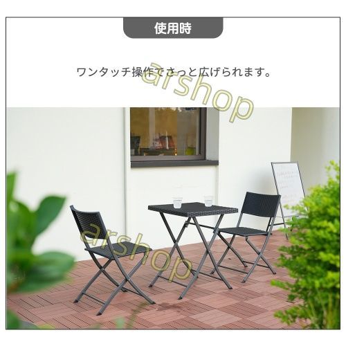 ガーデン テーブル セット 3点セット ラタン調 折りたたみ ガーデンファニチャー バルコニー アウトドア 屋外 省スペース コンパクト ベランダ