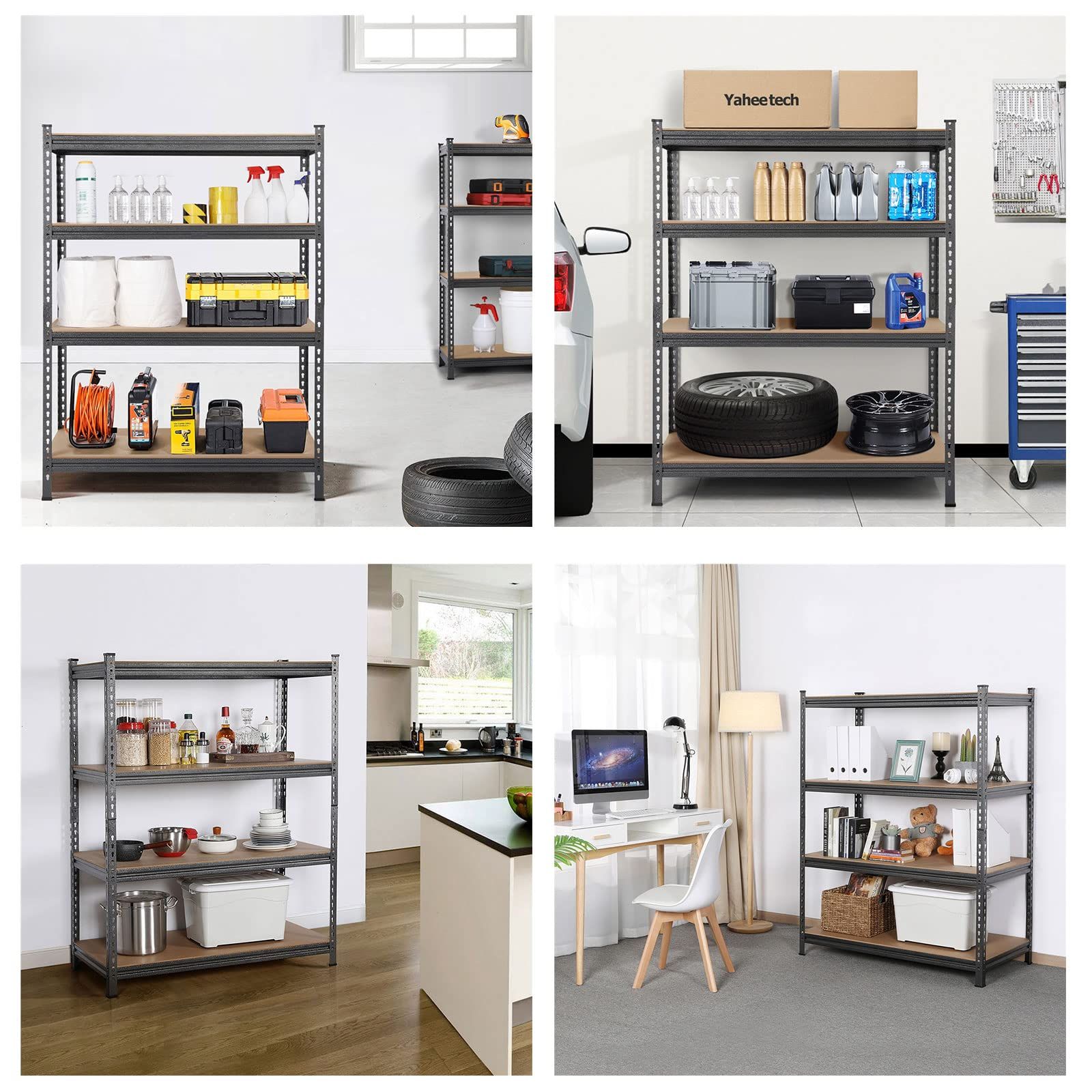 Yaheetech スチールラック キッチンラック 4段 幅112 奥行60 高さ150 メタルラック オープンシェルフ 高さ調整可能 自由に組み合わせ 収納棚 耐荷重320Kg ディスプレイ コーナーラック 防サビ加工 ネジなし スチールシェルフ メタルシェルフ 112×60×150cm オープンラック 高耐荷重 キッチン 物置 作業台 倉庫 ガレージ (ブラック)