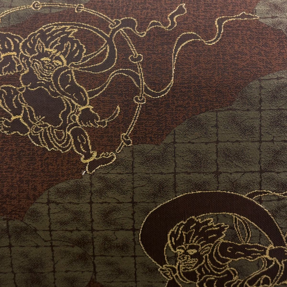 名古屋帯 風神雷神 雲文 金糸 えんじ色 正絹