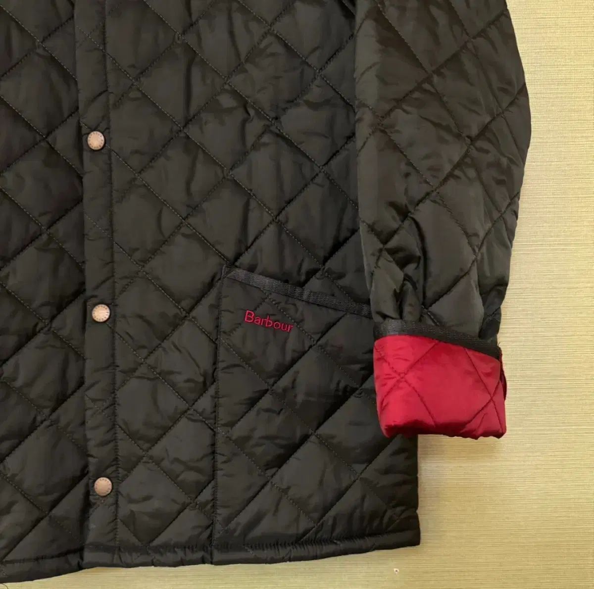 裏地は赤なので、袖を折ったまま着るとポイントになるので、可愛いです
