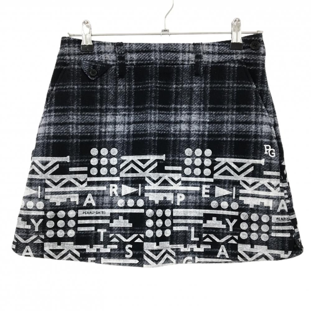 パーリーゲイツ スカート ダークネイビー×白 チェック 表起毛 下部プリント レディース 0 S ゴルフウェア PEARLY GATES