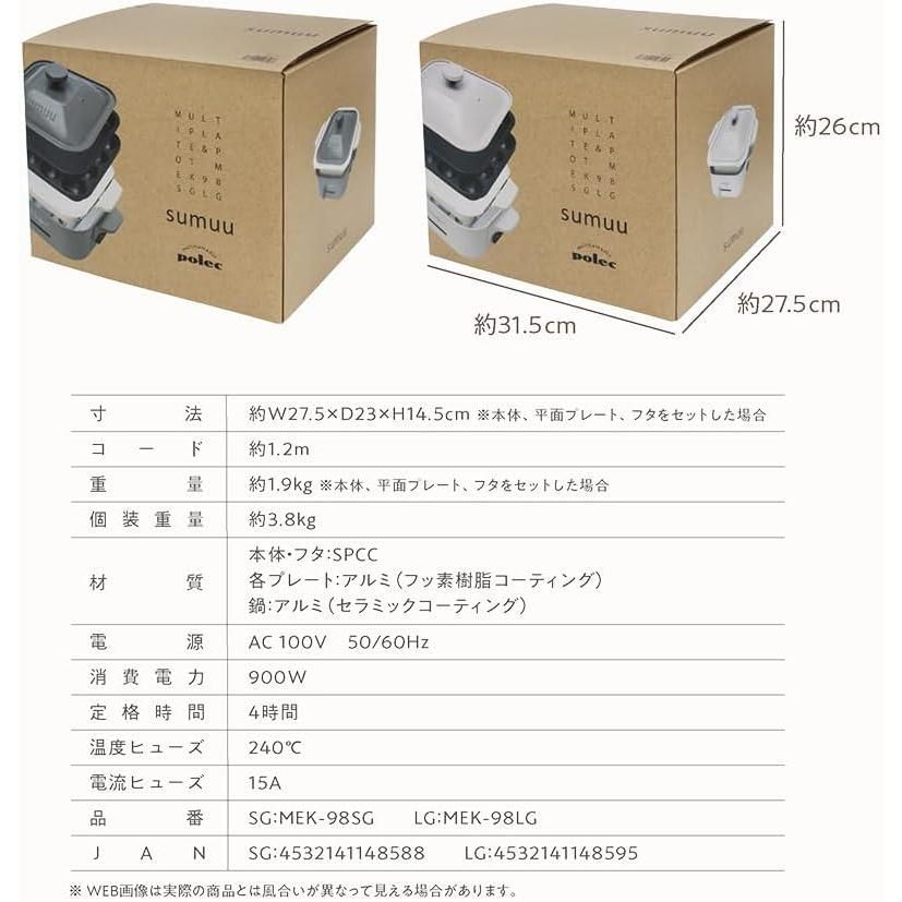 1〜3人用 着脱式ホットプレート スモーキーグレー MEK-98 SG 省エネ 900 w グリル鍋 深鍋 マルチ鍋&コンパクトホットプレート3 Way ひとり暮らし 1台多役