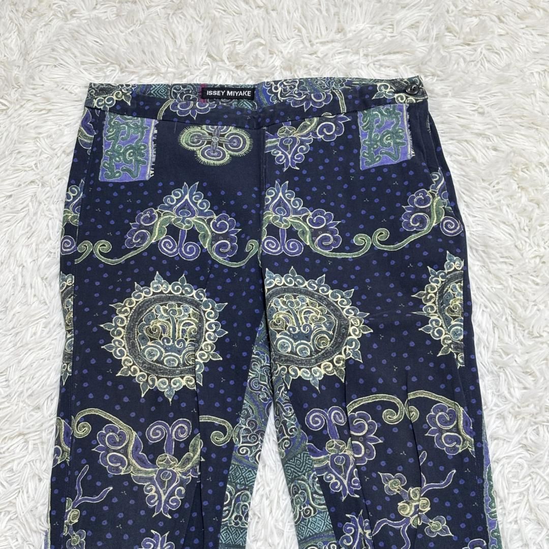 ISSEY MIYAKE ペイズリーストレッチパンツ 1 S ネイビー