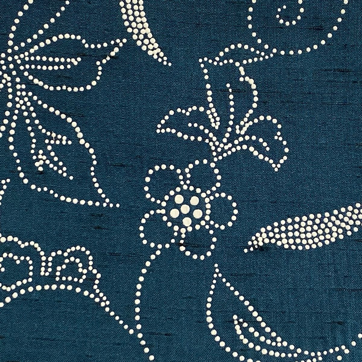 名古屋帯 ぜんまい紬地 花唐草 青緑 正絹