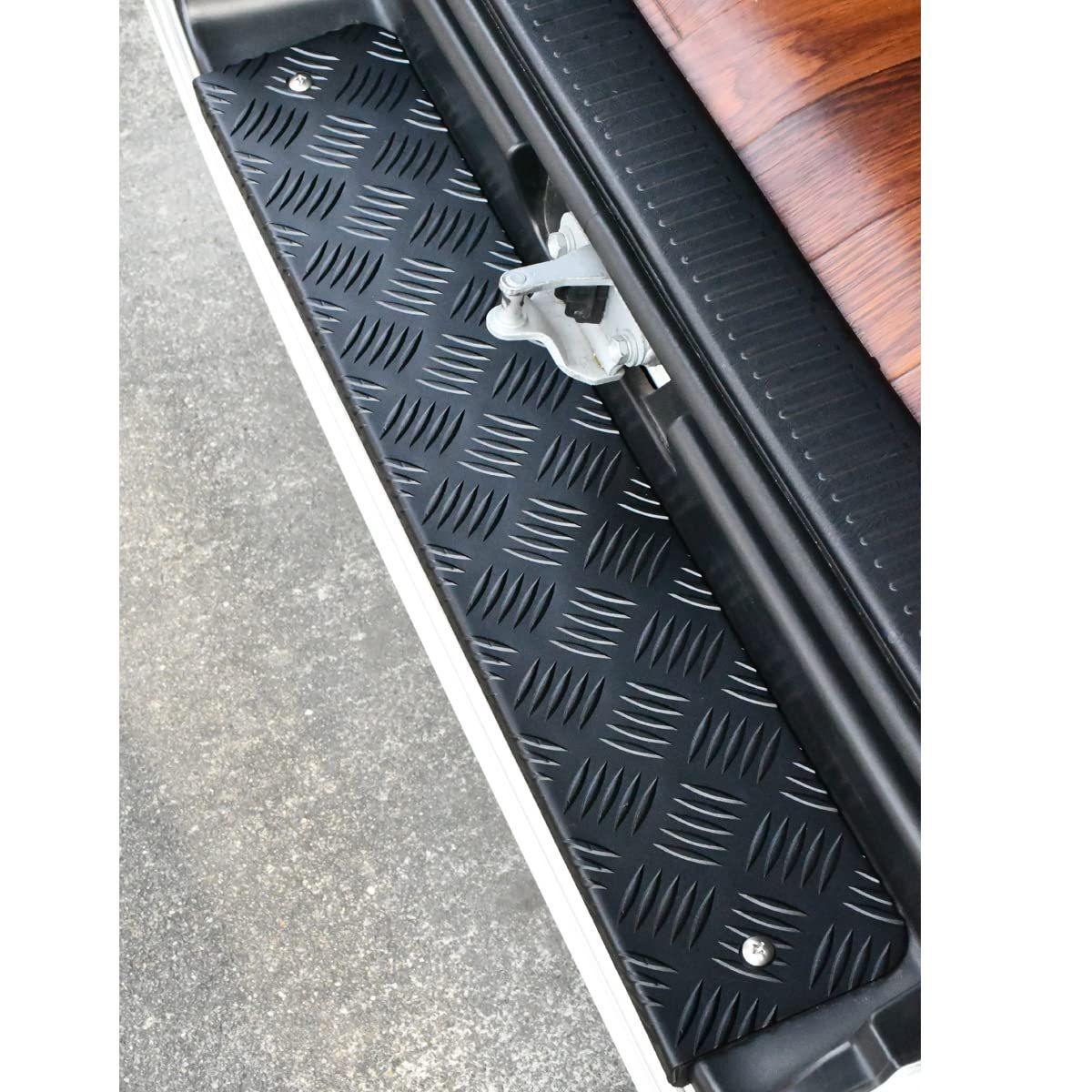 East field リアステップカバー アルミ 縞板 ハイエース200系対応 (レジアスエース)専用 標準ボディ対応 スーパーGL/DX 1型~8型専用 (ワイド ワゴン車取付不能) (ブラックサテン)