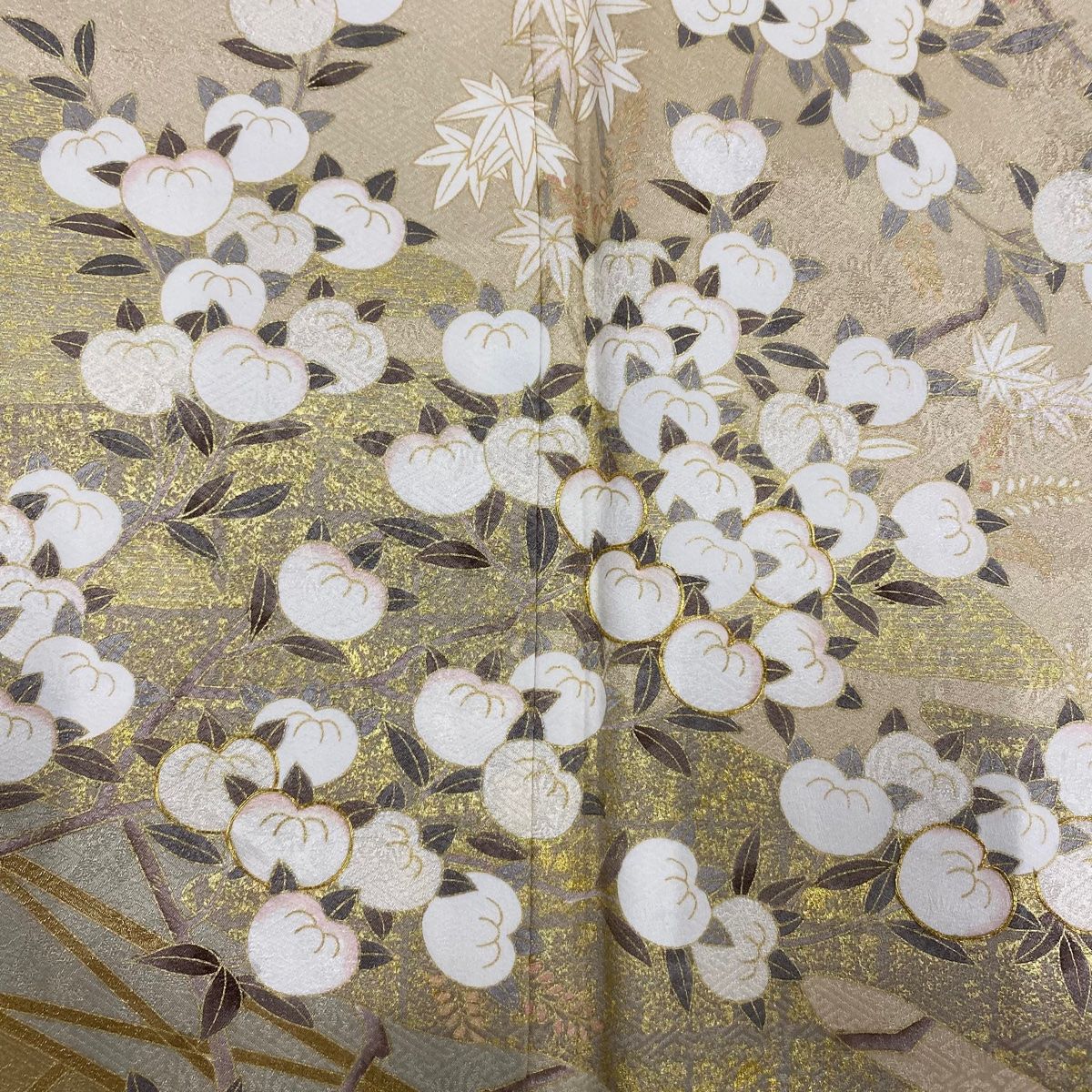 訪問着 身丈163 cm 裄丈66 M 袷 橘 楓 金糸 金彩 ベージュ 正絹 秀品